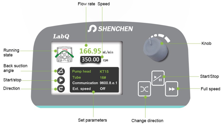 Die Schlauchpumpe hat einen geringen Stromverbrauch und ist zudem Geräuschearm. Durch den Drehknopf wird die Geschwindigkeit eingestellt und bei plötzlichem Stromausfall werden durch eine Speichersicherung die Benutzereinstellungen gespeichert.